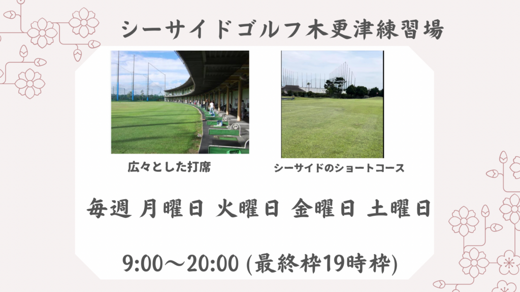 シーサイドゴルフ木更津でのタイムスケジュール 9:00枠、10時枠、11時枠、12時枠、13時枠、14時枠、15時枠、16時枠、17時枠、18時枠、19時枠となります。